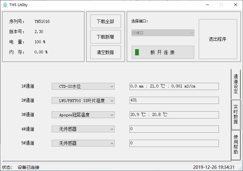 TH5是由我公司自主研發(fā)的一款操作簡單、輕巧便攜的數(shù)據(jù)采集器,可與土壤溫濕度、氣象參數(shù)等多種功能的傳感器連接使用。TH5設(shè)有5個(gè)通道接口,可連接1至5個(gè)傳感器。機(jī)箱防護(hù)等級(jí)IP67,適于野外長期使用。