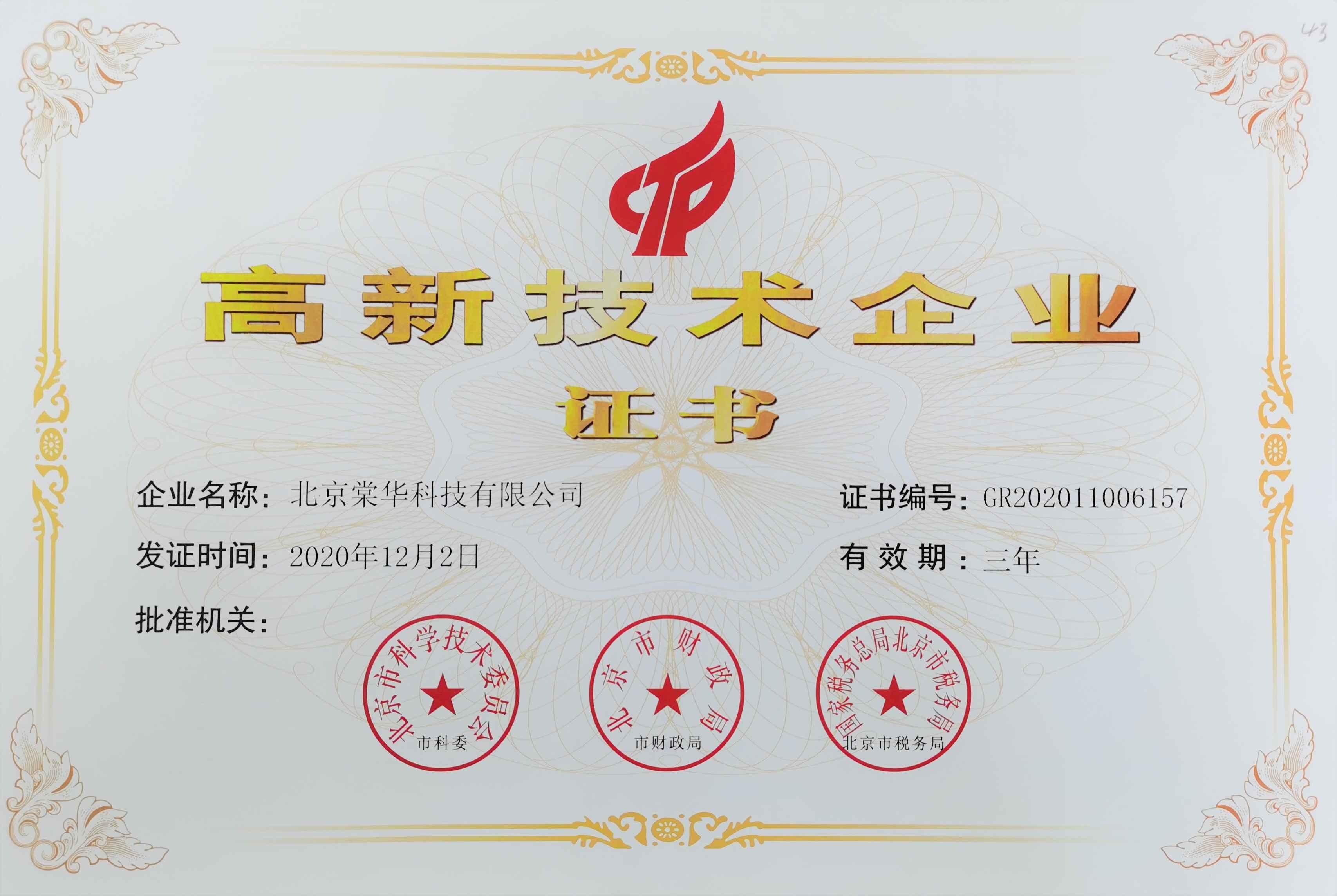 2020年12月,我公司順利通過高新技術企業認定,并榮獲高新技術企業證書。這既是我公司獲得的重要榮譽,也是對我們工作的認可和激勵。
